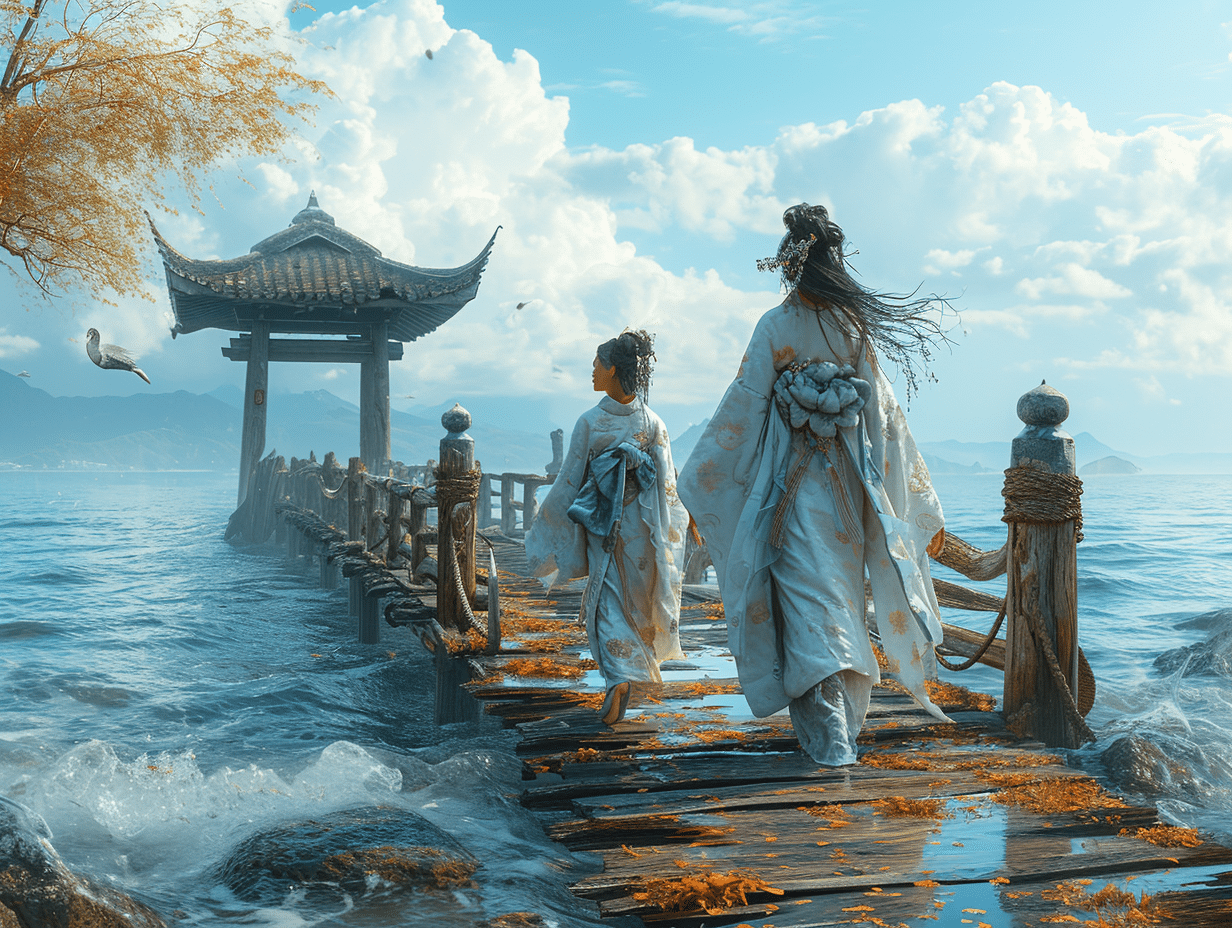 Au cœur de la mythologie shinto, Izanagi et Izanami se dressent comme les piliers cosmogoniques, personnages centraux de la création du monde et des îles constituant le Japon. Leur union féconde est à l’origine de nombreux kami, tissant ainsi le vaste réseau divin qui peuple les croyances nippones. Leur rôle ne se cantonne pas à la genèse, mais s’inscrit aussi dans les récits fondateurs qui façonnent l’imaginaire collectif et la conscience spirituelle des Japonais. Ces figures de la création sont vénérées pour leur action formatrice et leur lien indélébile avec l’archipel.